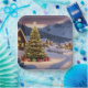 Christmas lights landscape with snow paper plate