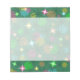 A fun, festive, retro look design inspired by rainbow-coloured fairy lights on a christmas tree. Notepad with a green, blue, pink, yellow orange and green customisable design for you to personalise with your own text, pictures and ideas. Created using digital techniques by jess perry.