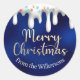 Christmas Lights on Snow Gold and Blue Custom Name Classic Round Sticker