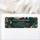 This elegant return address label features a festive pine garland design adorned with red and teal ornaments, pinecones, and twinkling lights, set against a rich green background. Perfect for adding a touch of holiday cheer to your Christmas cards, invitations, or packages. Personalise with your family name and address for a polished and seasonal finish.