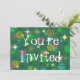 A fun, festive, retro look design inspired by rainbow-coloured fairy lights on a christmas tree. Invitation with a green, blue, pink, yellow orange and green customisable design for you to personalise with your own text, pictures and ideas. Created using digital techniques by jess perry.