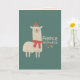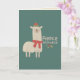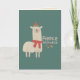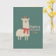 A cute llama in Christmas costumes with the pun "Fleece Navidad".