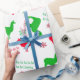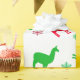 Cute holidays gift wrap with red and green Llamas or Alpacas, with snowflakes and the saying, "La la la la LLama."