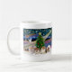Christmas Magic with four Chow Chows. The star of Bethlehem lights the way for three wise men while Santa and his reindeer fly into the night. A dove and a snowman add to the symbols of the Christmas season.
