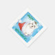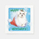 Celebrate the holiday season with a cute Maltese puppy sitting in a Santa hat amid a flurry of snowflakes and the words, Happy Howlidays!