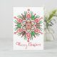 Hand-painted mandala snowflake with watercolors in Christmas colors. Lettering made with paint brush.