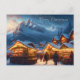 This Christmas postcard features a deep snowy village in the mountains in the evening. People walk thickly dressed over the festive, illuminated Christmas market. A romantic motif for all who love Christmas! Texts customisable. Pretty postcard for your Christmas greetings.