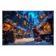 A digital illustration of a cartoon art style of a highly detailed bustling holiday market with stalls selling handmade crafts, ornaments, and festive decorations.