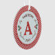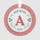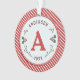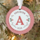Vintage designed Christmas monogrammed ornament. Designed with red and green colours set against a light blue diagonal striped background. Surrounded by beautifully designed holly. Customise with your name, initial and year.