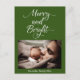 Minimal design with "Merry and Bright" in pretty modern white typography against a forest green background. You can easily personalise with a favourite family photo and family name on the front, as well as individual name signatures on the back. The back message reads "Wishing you Peace, Love and Joy."