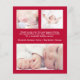 Cute budget-friendly Christmas holiday birth announcement featuring your newborn's photo, "Merry & Bright and up all night!" written in a mix of elegant typography and a stylish red script and your baby's name and birth stats. On the reverse, add three additional photos and a personalised seasonal message.