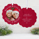 Modern red Christmas holiday greeting card that can also be used as a gift tag and a paper tree ornament. The front features your photo and "May Your Days Be Merry & Bright" in an elegant white serif font. On the back, personalise your greeting and names in simple white typography.