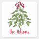 Christmas Merry Mistletoe Holiday Greenery Leaves Square Sticker
