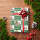 Watercolor Christmas mice on white background with holiday greetings text on green.