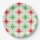Christmas Mid Century Red Green Atomic Starbursts Paper Plate