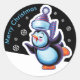 Christmas midnight round sticker Penguin skating and other Snowfolk.