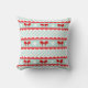 Festive throw pillow with mint/white stripes pattern, red bows and white stars.