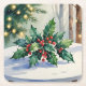 Christmas Mistletoe Holiday Watercolor Square Paper Coaster
