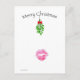 A mistletoe hanging from the letter- C- on Merry Christmas and a kiss with red lipstick below it.