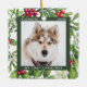 Decorate your tree or give a special gift this holiday season with this elegant pet photo in a wreath design christmas ornament, and matching decor. This dog christmas ornament features a watercolor green and red wreath with holly and berries. Personalise with name front, year back . This pet christmas ornament will be a favourite among pet lovers, dog lovers, and animal lovers. Visit our collection for matching pet photo christmas cards, home decor, and gifts. COPYRIGHT © 2020 Judy Burrows, Black Dog Art - All Rights Reserved. Christmas Mistletoe Personalised Pet Dog Photo Ceramic Ornament