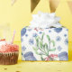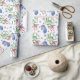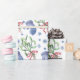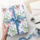 Cute holiday wrapping paper with a snowflake, mistletoe, and mitten pattern in blue, green, and red.