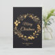 This exquisite Christmas Modern Elegant Festive Unique Black Gold Holiday Card boasts a black background and luxurious gold accents, making it the perfect choice for those seeking a high-end and modern touch to their holiday greetings. Crafted with utmost attention to detail, our Christmas card embodies the spirit of the season, delivering a festive message in a truly unique and sophisticated way. The combination of contemporary design elements and timeless festive Christmas wreath makes it ideal for those seeking a fresh, elegant twist on the traditional Xmas themes. Whether you're sending it to friends, family, or business associates, this luxury Christmas card is the epitome of style and holiday cheer.
