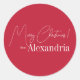 Christmas Modern Red Merry Christmas From Name Classic Round Sticker