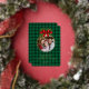 Christmas Tree Modern Tartan Plaids Personalised Family of three Green Photo Foil Holiday Card.