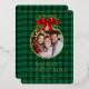 Christmas Modern Tartan Green Plaids Family Photo Foil Holiday Card
