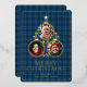 Christmas Tree Modern Tartan Plaids Personalised Family of three Blue Photo Foil Holiday Card.