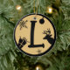 Christmas Monogram Letter L Black Gold Ceramic Tree Decoration