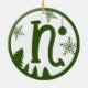 Christmas Monogram Letter N Green White Ceramic Tree Decoration