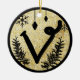Christmas Monogram Letter V Black Gold Glitter Ceramic Tree Decoration
