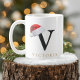 Bring festive elegance to every sip with this charming Christmas mug featuring a bold letter V topped with a cozy Santa hat and a personalized name in warm winter-gold lettering. Clean, modern, and full of seasonal cheer, it’s the perfect holiday gift for anyone with a “V” initial — family, friends, kids, teachers, or coworkers.