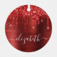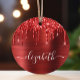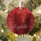 Custom elegant and girly monogram Christmas ornament featuring red faux glitter dripping against a red faux brushed metal background. Personalise with your name in a stylish trendy white script with swashes.