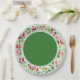 Christmas Montage Paper Plates. Featuring a montage of christmas symbols like reindeer, Christmas decorations, Christmas trees, holly, angels, stars and hearts. There is a border of dark green polka dots with a dark green centre. Also comes in light green, dark and light reds.