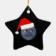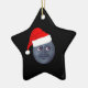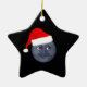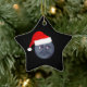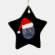 It's a classic star shaped Christmas ornament, featuring a blue moon emoji with a smile and eyes looking to the right, wearing a traditional red and white Santa hat! Both sides of the ornament have the graphic on a black background. Customise it, choose from different ornament styles and shapes, and grab yours today!