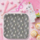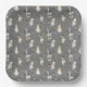 Cute Christmas moose and gnomes skiing on grey background with snowflake overlay.
