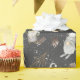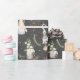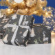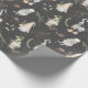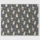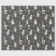 Cute Christmas moose and gnomes skiing on dark grey background with snowflake overlay.