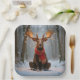 Christmas Moose Wearing Scarf and Lights Paper Plate