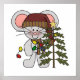 An adorable Christmas mouse in a red stocking cap puts the string of Christmas lights on the holiday tree on mouse theme holiday T-shirts, mugs, cards, stickers, tote bags, magnets, keychains, keepsake ornaments and boxes, wall clocks, and other holiday items.