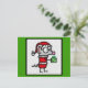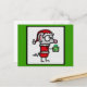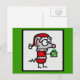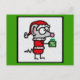 Funny cartoon mouse with stick arms and legs, pink nose, and googly eyes wearing a Santa suit, carrying a gift in green wrapping paper and a bow. Say Merry Christmas with this fun and unique postcard. Original digital cartoon art by Taylor Addams.