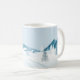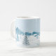 Ceramic coffee/tea/cocoa mug is shown with a festive Christmas snow scene print.