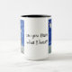 Mug depicting copies of hand painted watercolor picture of bunnies and star. Words read "Do you Hare what I hear?"