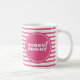 These unique Christmas mugs feature pink and green stripes with the words "Merry & Bright" in bold white typography. A modern and trendy choice for the winter holidays or to give as a pinkmas white elephant gift. To see the complete magenta theme visit www.zazzle.com/dotellabelle
