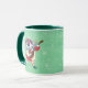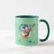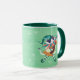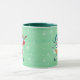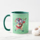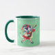 This charming mug features a delightful illustration of a playful cat dressed as a jester elf, joyfully playing music amidst a snowflake backdrop.