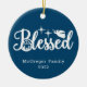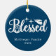 Add your family name and year to this Nativity Scene Blessed ornament or personalise it for friends, family, coworkers, staff or students as a thoughtful Christmas gift. Express the true reason for the Christmas season celebrating the birth of Jesus. Blue and White Christmas Nativity scene announcing Joy to the World.