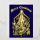 Christmas Nativity Retro Medieval Woodcut Foil Holiday Card