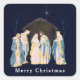 Christmas Nativity Scene on Blue Night Sky Square Sticker