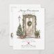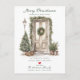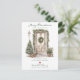 This festive moving announcement features the saying "Merry Christmas from Our New Home" with a beautiful watercolor light brown tan front door adorned with Christmas trees, pine garland and wreath. The announcement is perfect for sending to friends and family during the holiday season to let them know about your new address. The front of the announcement features the saying and watercolor front door, and includes your new address and contact information. The overall design is festive and inviting, and the announcement is sure to put a smile on the faces of your loved ones.